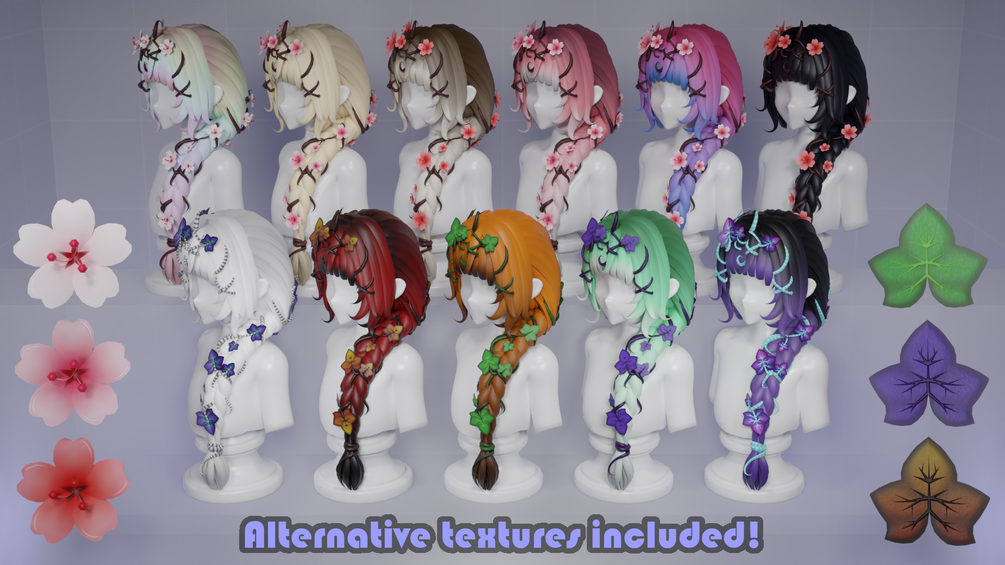 🌿 Hair, Vines, Ivy, & Sakura Flowers are separate meshes for ease of use. (Create toggles, or delete unwanted meshes.)
