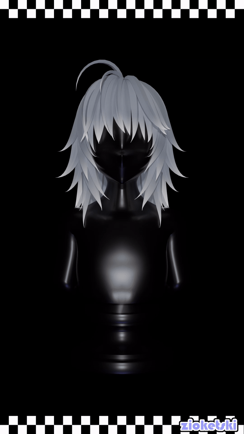 A sleek, anime-inspired wolf cut, complete with ahoge.